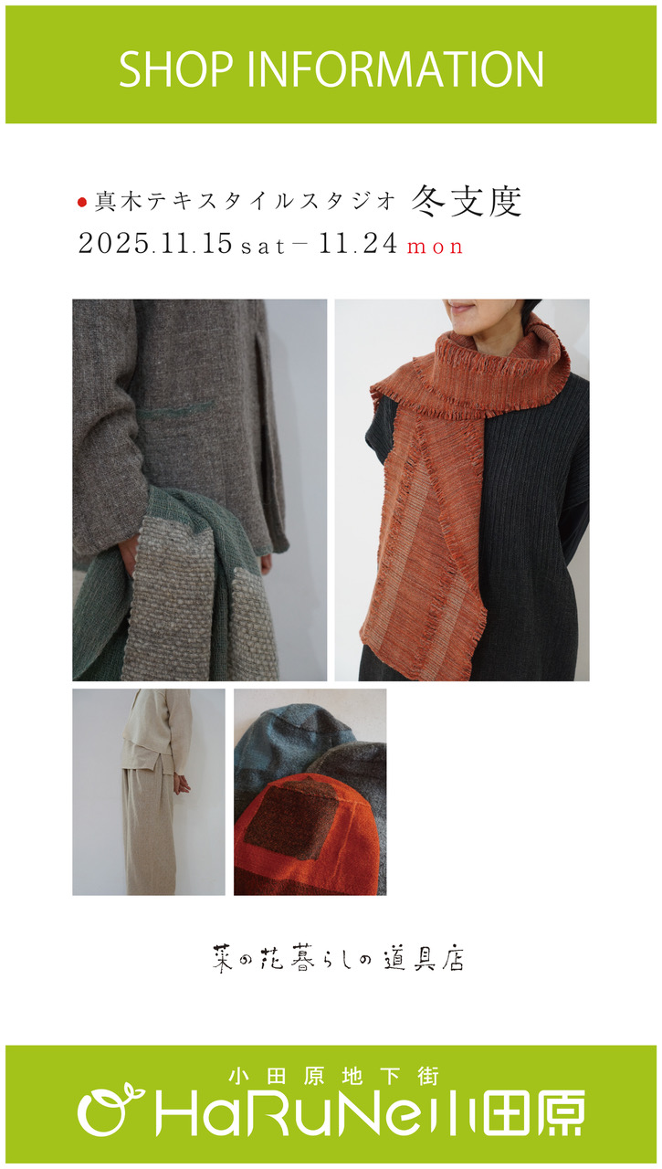 【菜の花 暮らしの道具店】真木テキスタイルスタジオ 冬支度